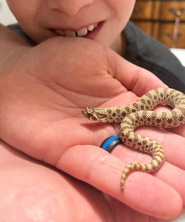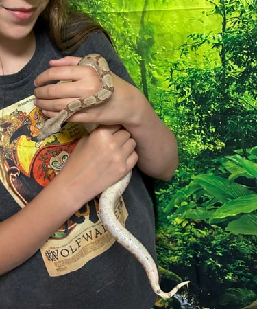 We are Richard and Kendra, the husband and wife creators of Rich Reptile Encounters. Richard’s lifelong love of nature and animals began when he started raising a variety of animals over 30 years ago. Kendra’s experience was limited to dogs, a hamster and a rat. Then she married Richard. Over the years she learned to enjoy their growing collection of scaly friends. Together we’ve found joy in sharing that passion with our children—and soon after, with friends and neighbors. There’s something truly special about the moment someone holds or pets a reptile and lights up with excitement. We’ve seen firsthand how our animals can bring joy, spark curiosity, and even ease stress or anxiety. That’s why we started this journey—to share those meaningful experiences with others, one reptile encounter at a time.